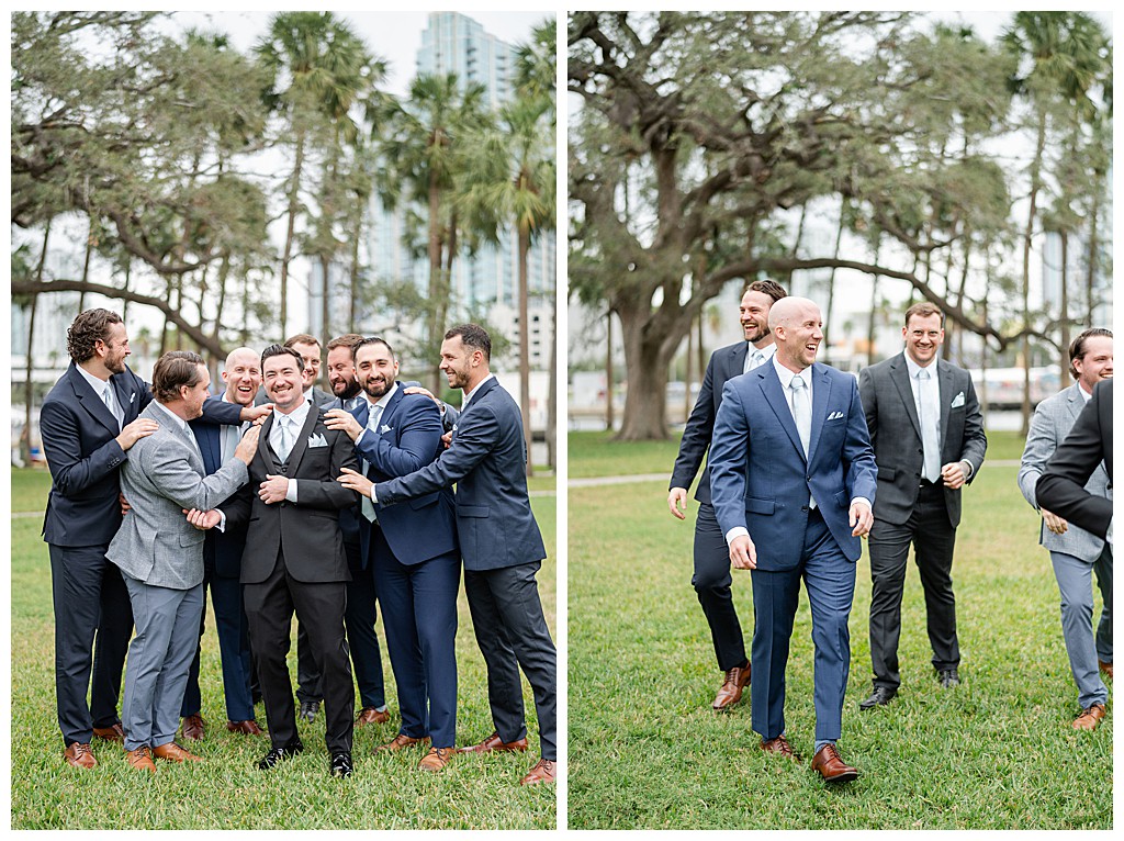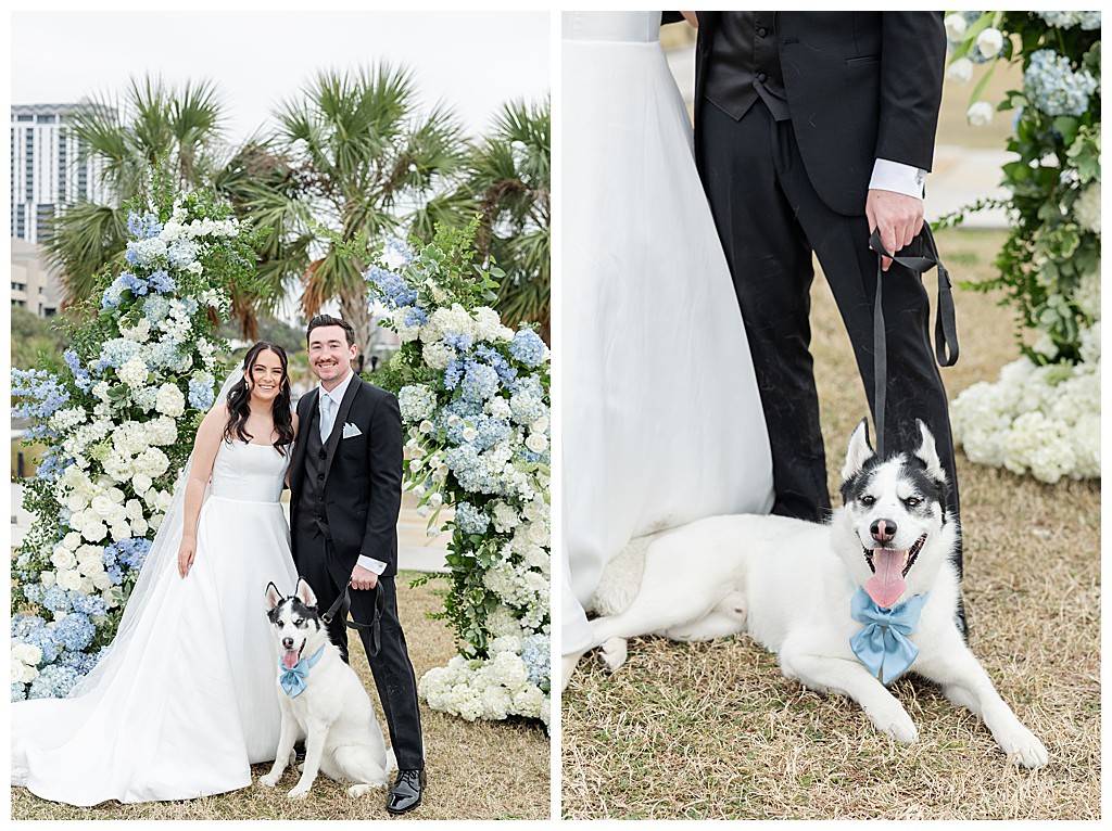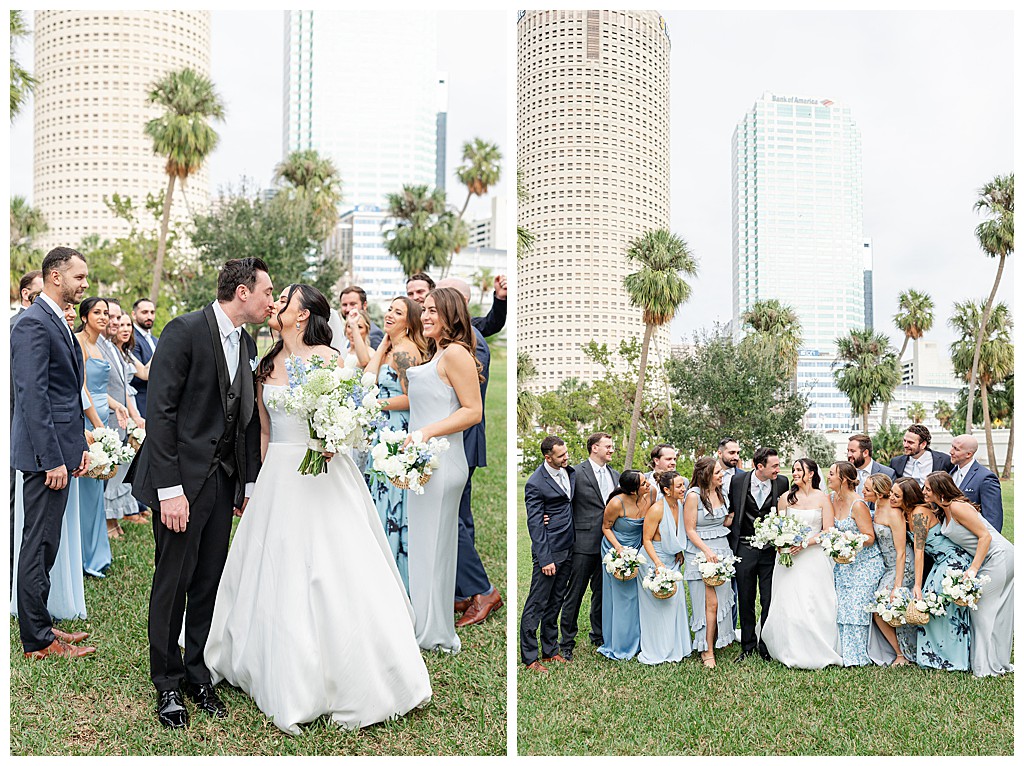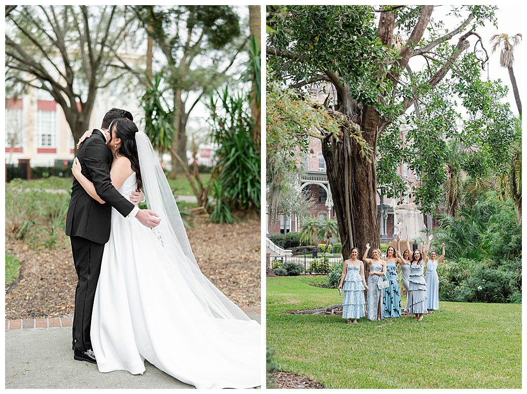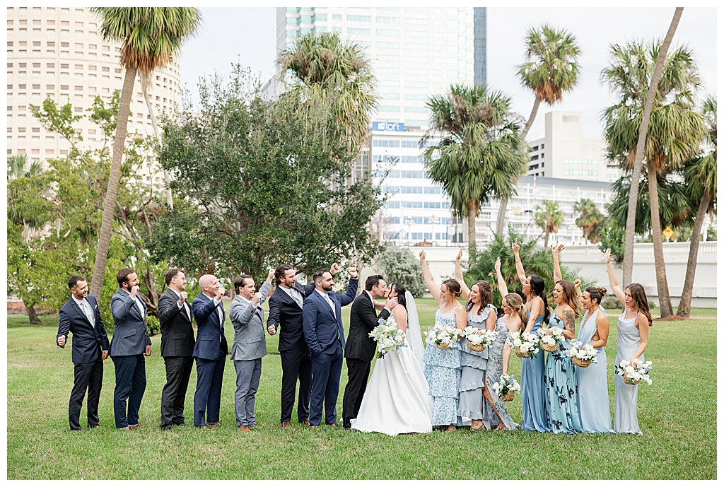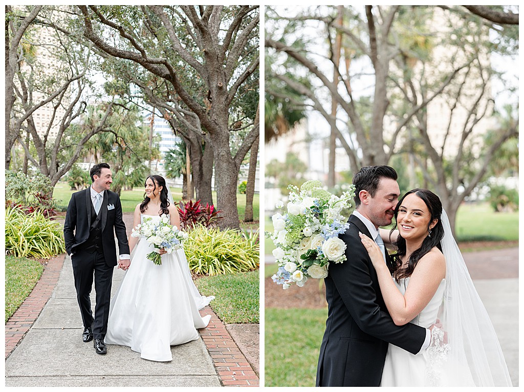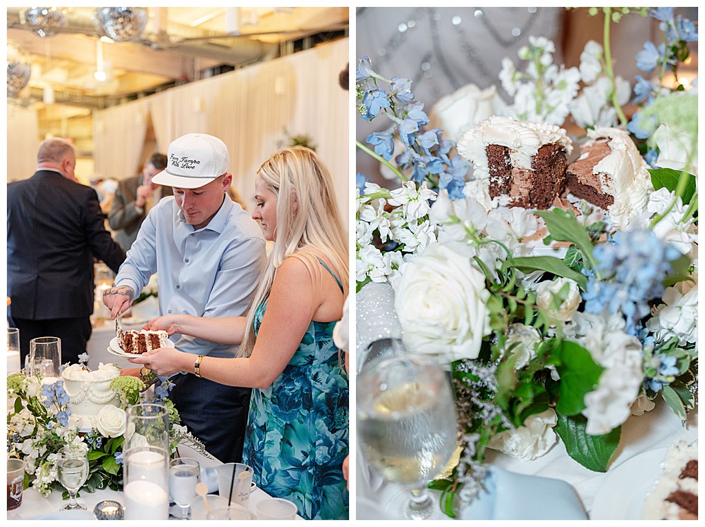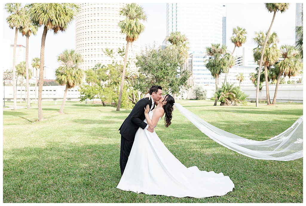 Scroll down to see some of my favorite photos from their day including their getting ready photos, their first look, their portraits at the university of tampa, their dog bolt, and their reception events (like every table cutting a cake, meg’s dress change, and their parents dancing to mama mia!).