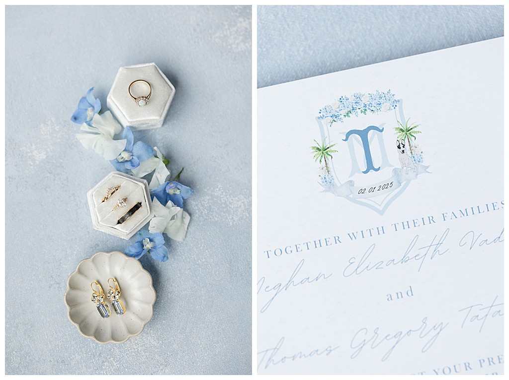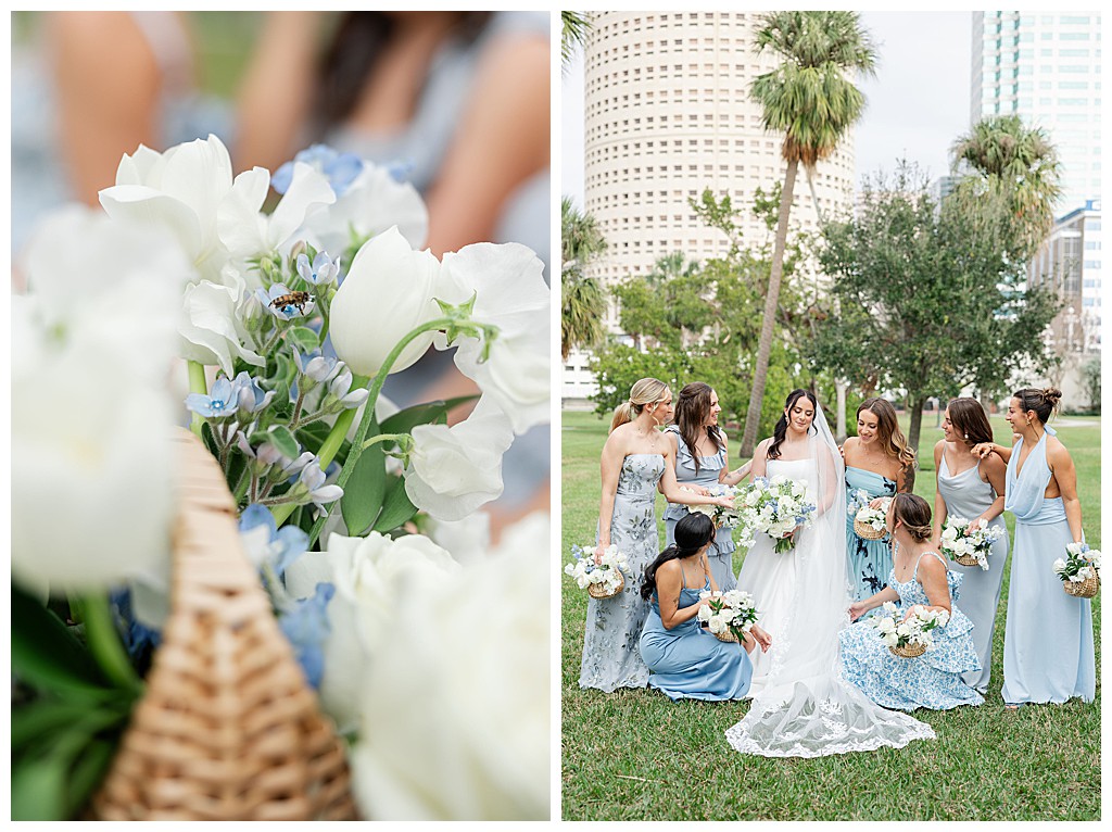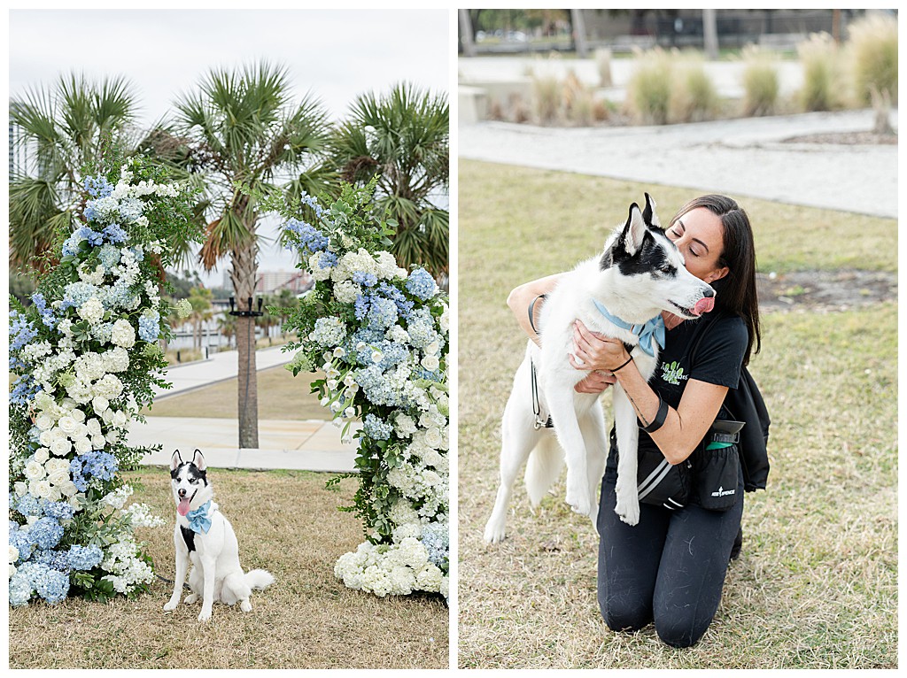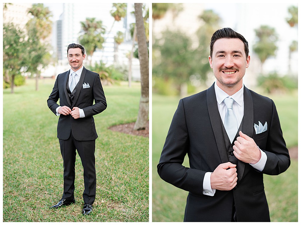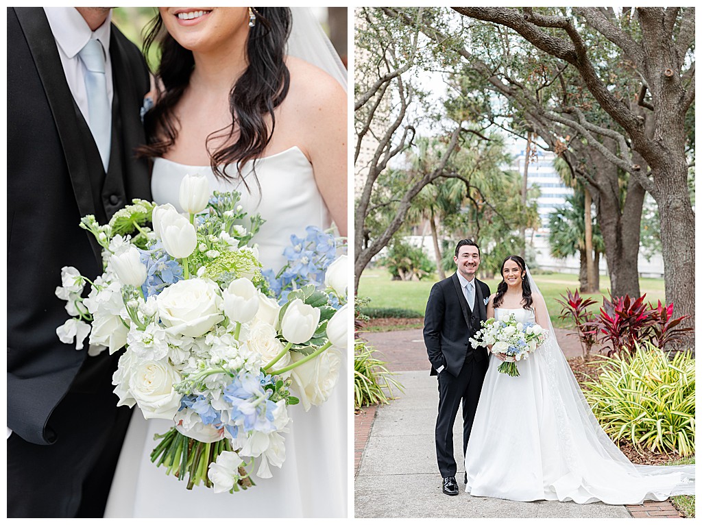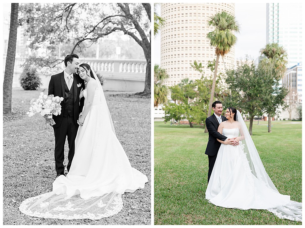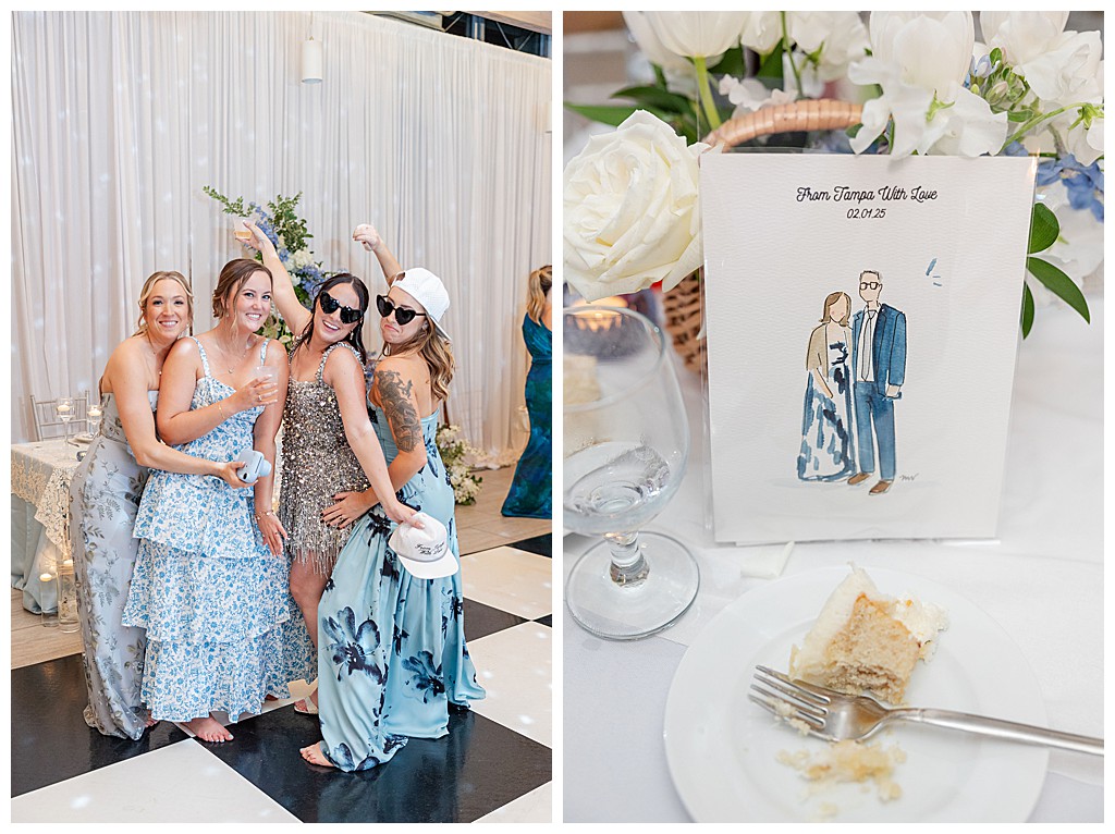 Scroll down to see some of my favorite photos from their day including their getting ready photos, their first look, their portraits at the university of tampa, their dog bolt, and their reception events (like every table cutting a cake, meg’s dress change, and their parents dancing to mama mia!).
