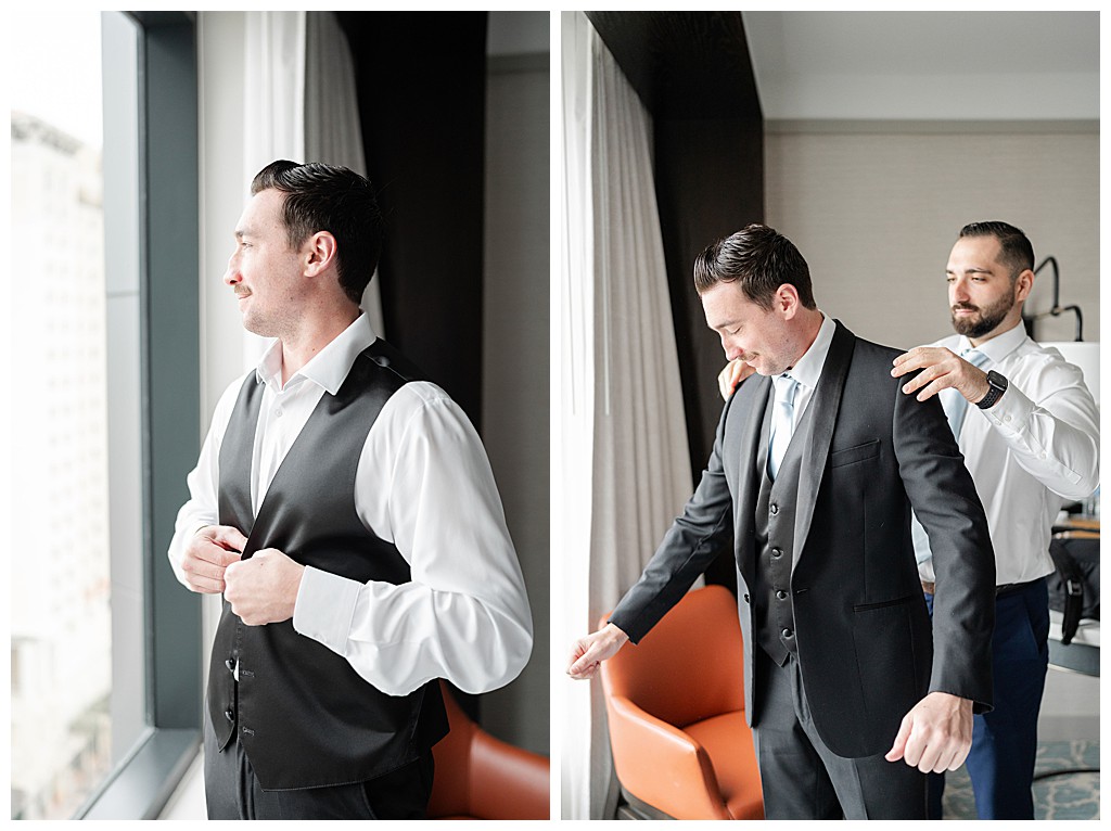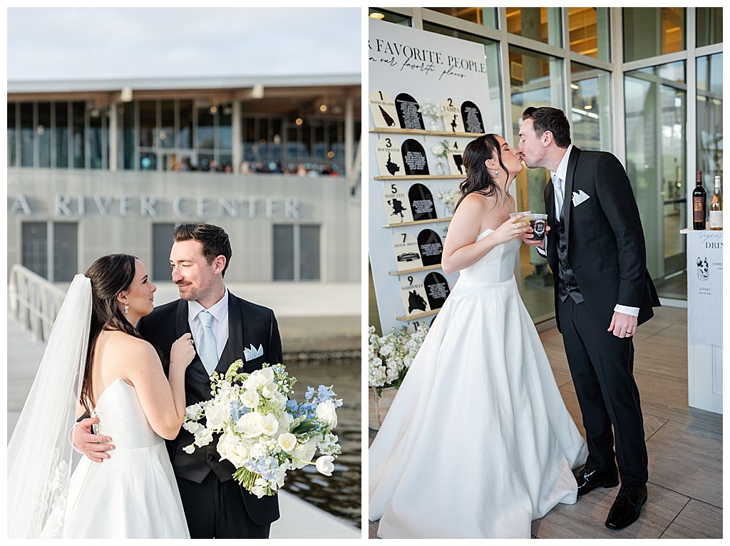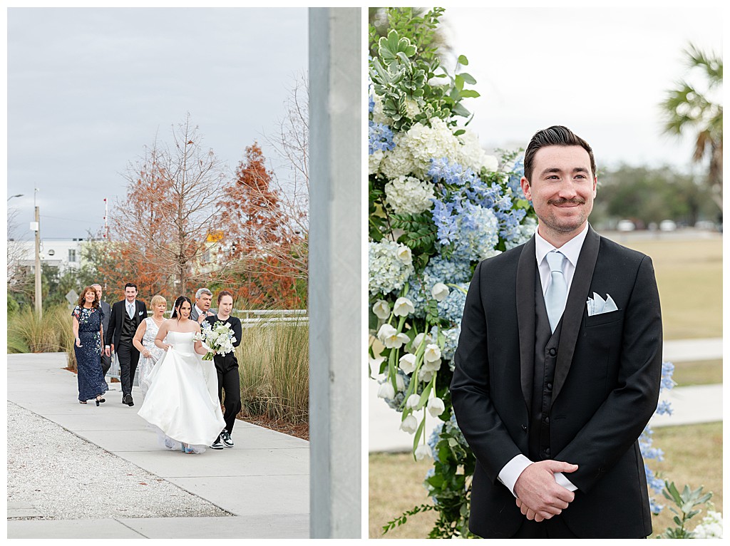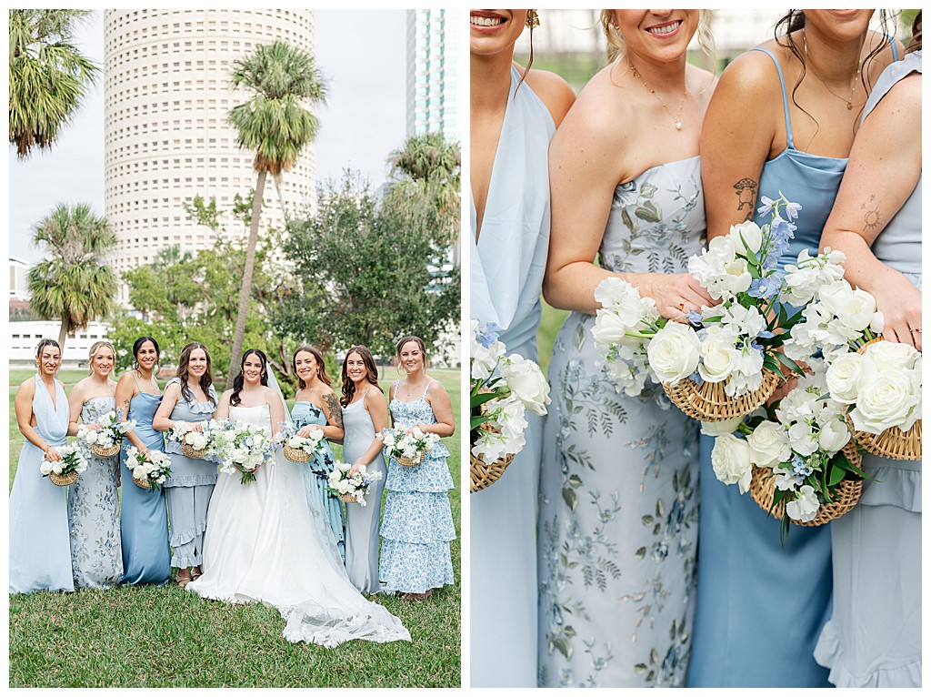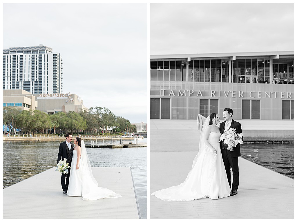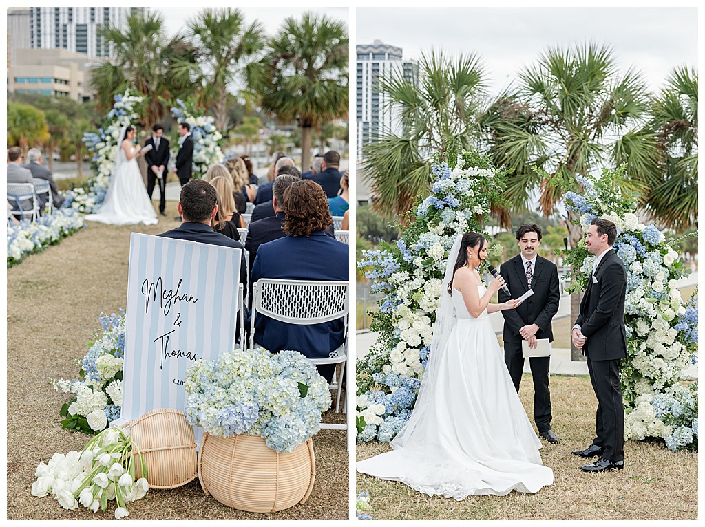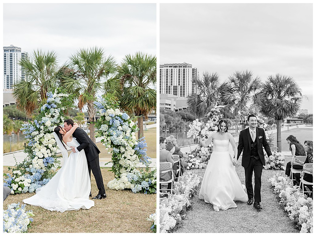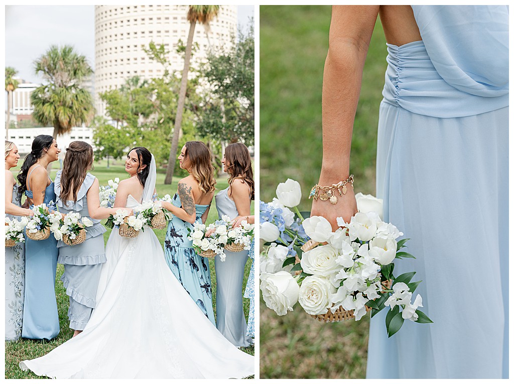 Scroll down to see some of my favorite photos from their day including their getting ready photos, their first look, their portraits at the university of tampa, their dog bolt, and their reception events (like every table cutting a cake, meg’s dress change, and their parents dancing to mama mia!).